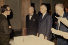 Secretary of the Interior Hickel walking around Independence National Historical Park.