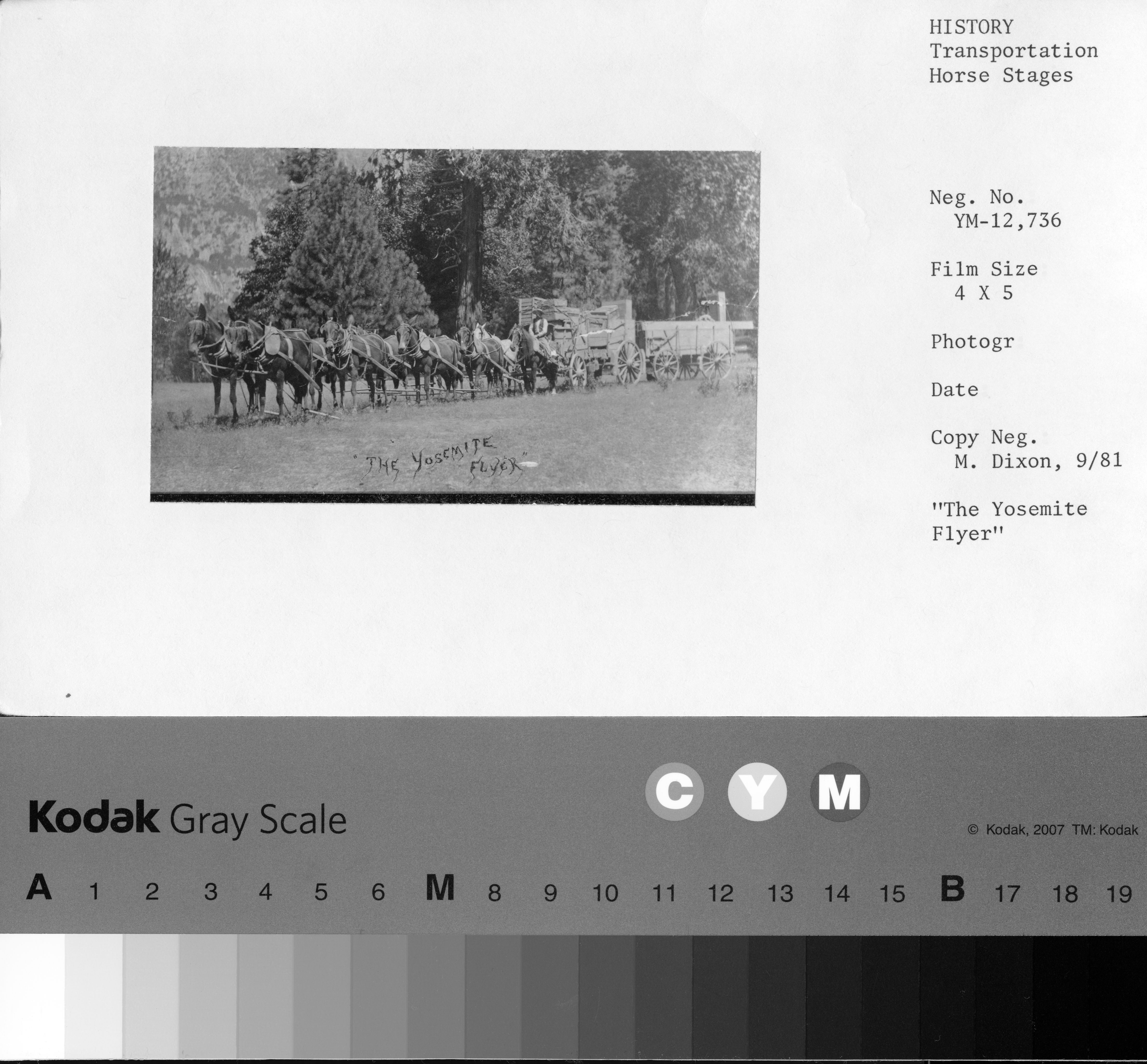 Copy Neg: J. Ernest, 1983. Yosemite Valley Stage. Original print in over-sized drawer in RL.