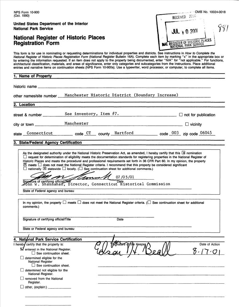 Manchester ; Roughly bounded by E. Center, Harrison, Norman, Charter Oak, Main and Cottage Sts.