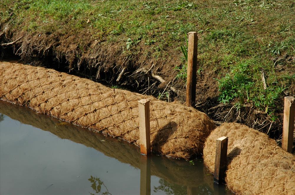 Coir erosion control devices being installed - -