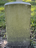 Back of historic upright marble headstone with recessed shield face.