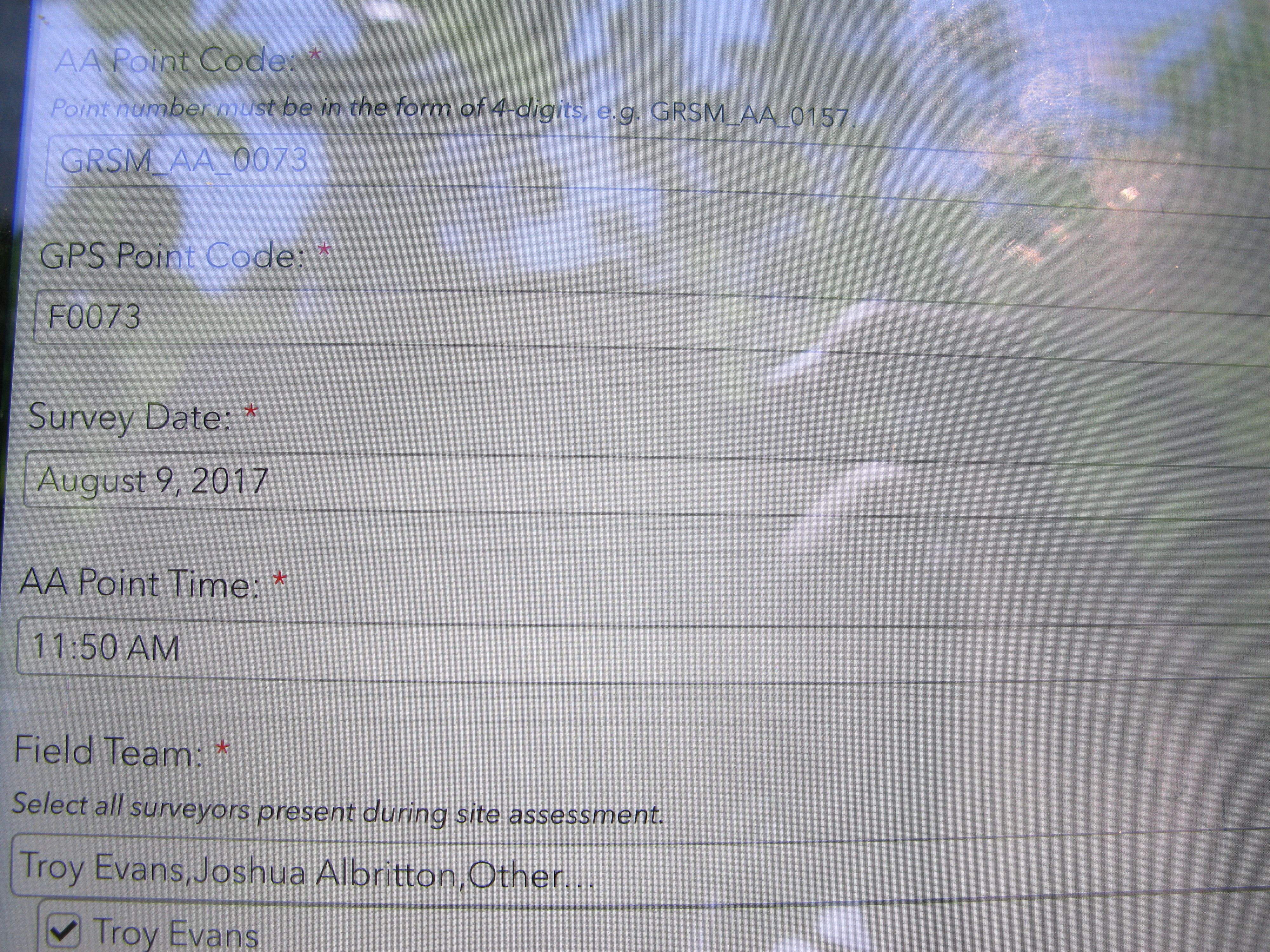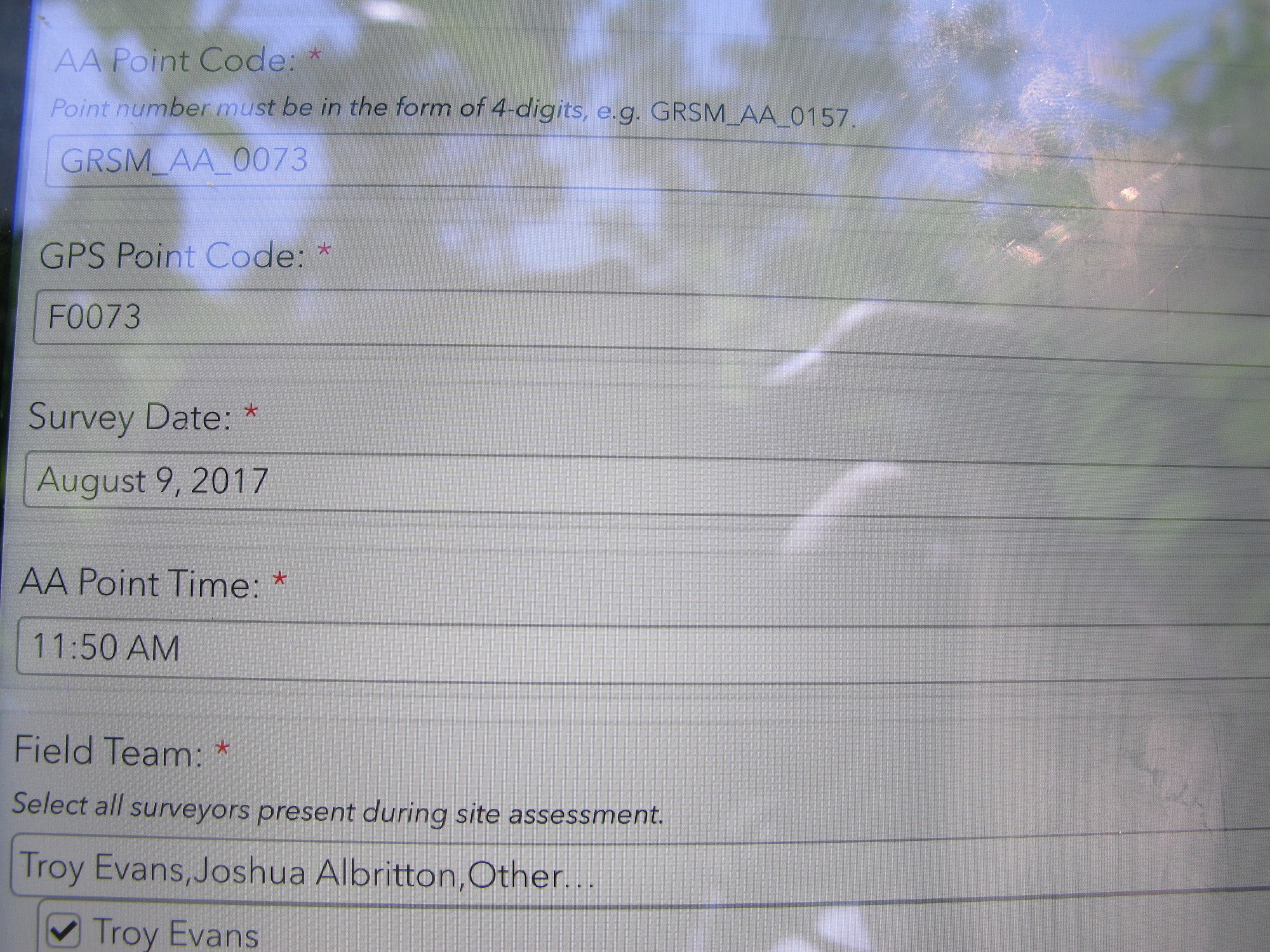 GRSM Accuracy Assessment. Plot Code: GRSM_AA_0073_1