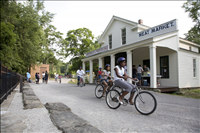 Cuyahoga Valley National Park (CVNP) and Cuyahoga Valley National Park Association present Get Up, Get Out & Go!, a campaign introducing recreational opportunities along the Ohio & Erie Canal Towpath Trail in Akron and the national park. The program targets residents in the urban neighborhoods surrounding the Towpath Trail in Akron which is a part of the larger Ohio & Erie Canalway, a national heritage area. Get Up, Get Out & Go! serves as an invitation for kids 11 to 14 years old and their families to give the Towpath Trail a try and to venture further along the trail into CVNP. || Youth bicycle on the Towpath Trail during the Get Up, Get Out, Go! kickoff event in June 2007. The group is lead by Metroparks Serving Summit County staff.