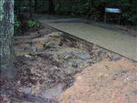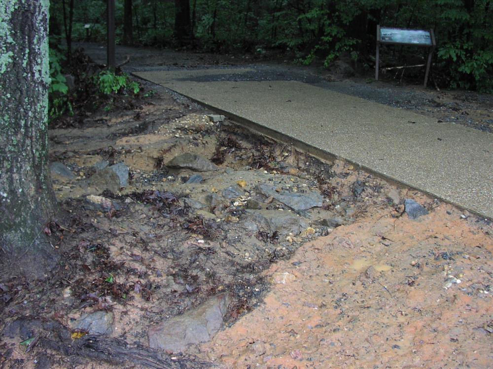 Documentation of damage to Theater in the Woods Road done by creek flooding, June 2006 and subsequent repairs.