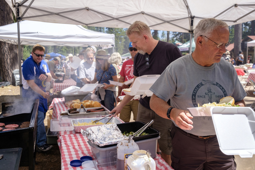Members of the Anderson Rotary serve food at the fundraiser barbecue.