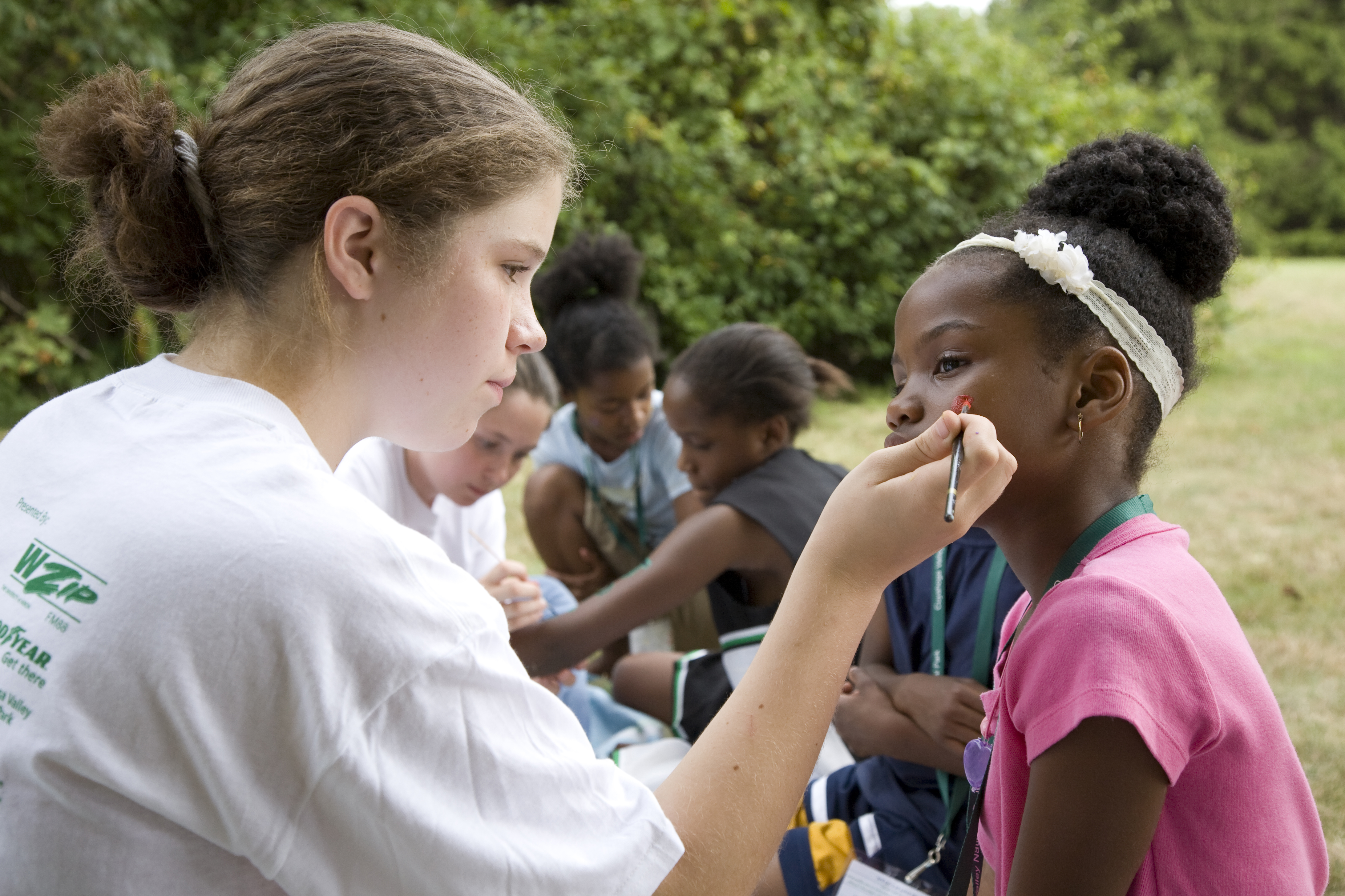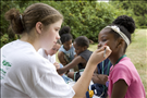 Youth have their faces painted at the Get Up, Get Out & Go! finale in August 2007. || Cuyahoga Valley National Park (CVNP) and Cuyahoga Valley National Park Association present Get Up, Get Out & Go!, an urban outreach program introducing kids ages 11 to 14 and their families to recreational opportunities along the Ohio & Erie Canal Towpath Trail in the greater Akron (Ohio) area. This free summer series targets residents in the urban neighborhoods surrounding the Towpath Trail in Akron but is open to all participants.