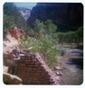 Interpretive sign near the Zion Lodge footbridge. ; ZION Museum and Archives Image 005.06.05-21of22 ; ZION 15933