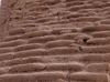 Looking up from altar, this is a view of adobe bricks before stabilization efforts.