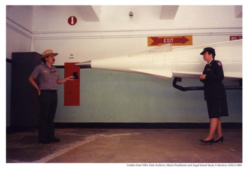 Col. Susan Cheney with Nike missile and ranger John Martini. “Last XO of site, 1974," SF-88, Fort Barry.