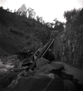 BW photo of a car that went off the road into the Virgin River. ; ZION Museum and Archives Image 107_05_05001 ; ZION 15933