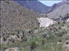 Remains of a vat that was used to process gold ore with cyanide at the Bonanza King Mine. The vat is sitting on the edge of a large tailing pile that is at the head of a wash. The pile is approximately 35 to 40 feet tall and the contaminated sediment is moving downstream.