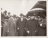 Henry Ford, Thomas Edison, and President Herbert Hoover on station platform at Smiths Creek station.