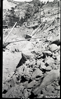 Shattered condition of tunnel wall, illustrating need for repair and danger of work of removing debris from footings. ; ZION Museum and Archives Image 002_02045 ; ZION 7526