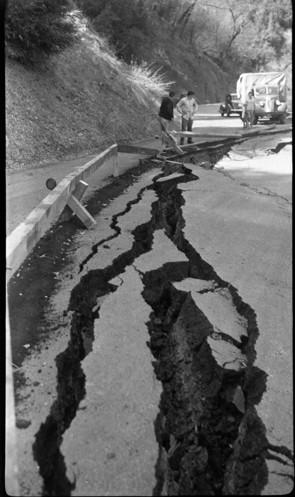 Floods and Storm Damage, slide on Generals Highway. Individuals unidentified.
