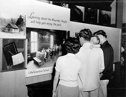 The way it used to be -- park visitors in museum featuring pioneer exhibits, in Great Smoky Mountains National Park.
