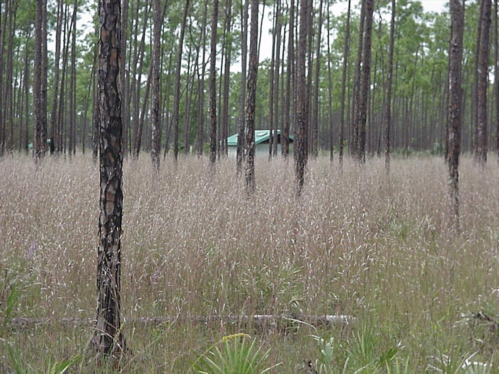Grass regrowth beneath pines