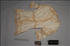 White silk blouse, heavily trimmed with lace, hook and eye closures with rosettes, three ribbon streamers at waist