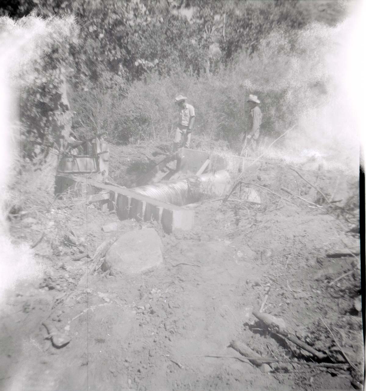 Park personnel installing a culvert/drainage pipe in location in Zion. ; ZION Museum and Archives Image 006.04.16-5of6 ; ZION 15933