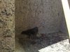 Baby pigeons and their mother nesting on the Statue of Liberty's pedestal.