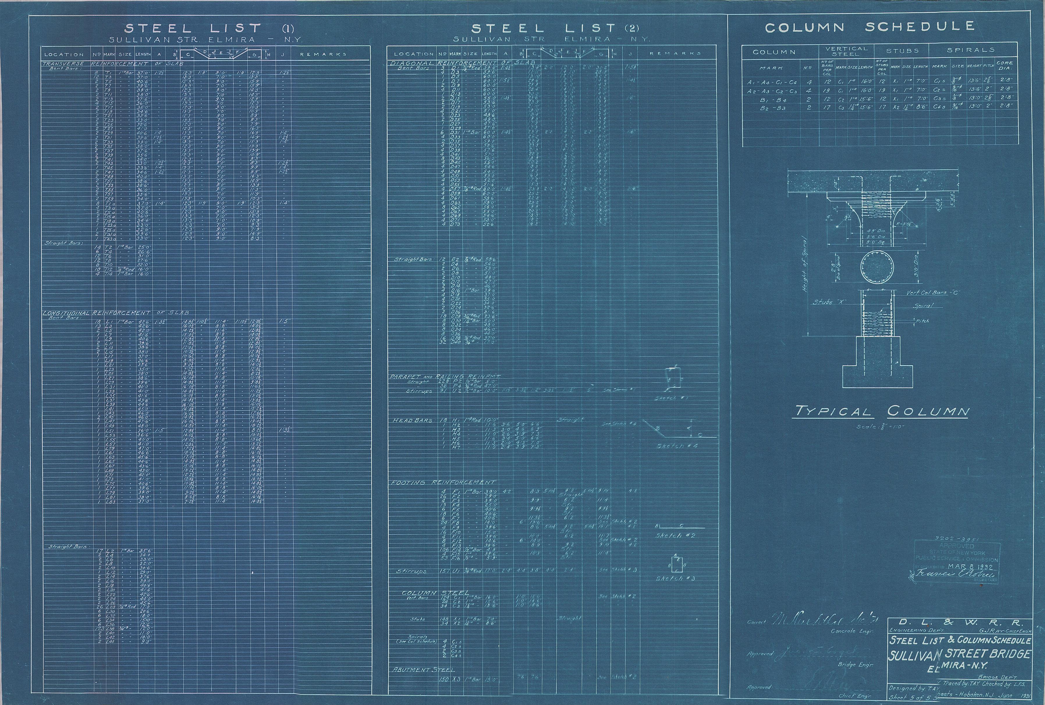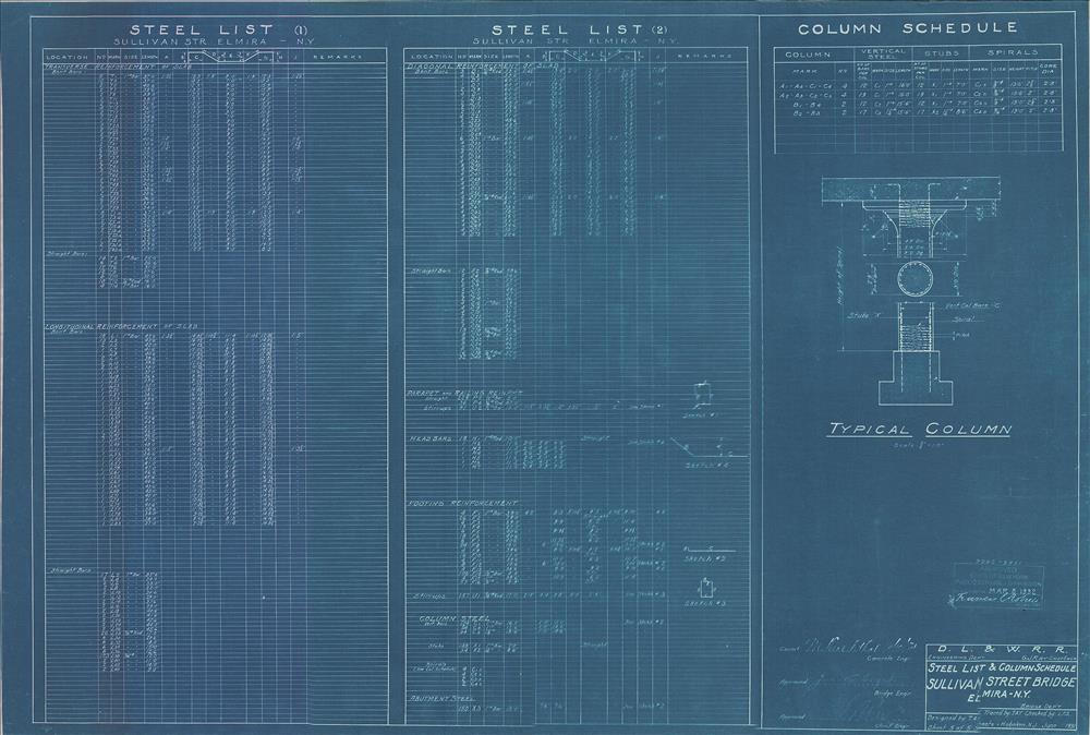 Sullivan Street Bridge--Steel list and column schedule--Elmira, NY [1931.06] Sheet no. 5 of 5