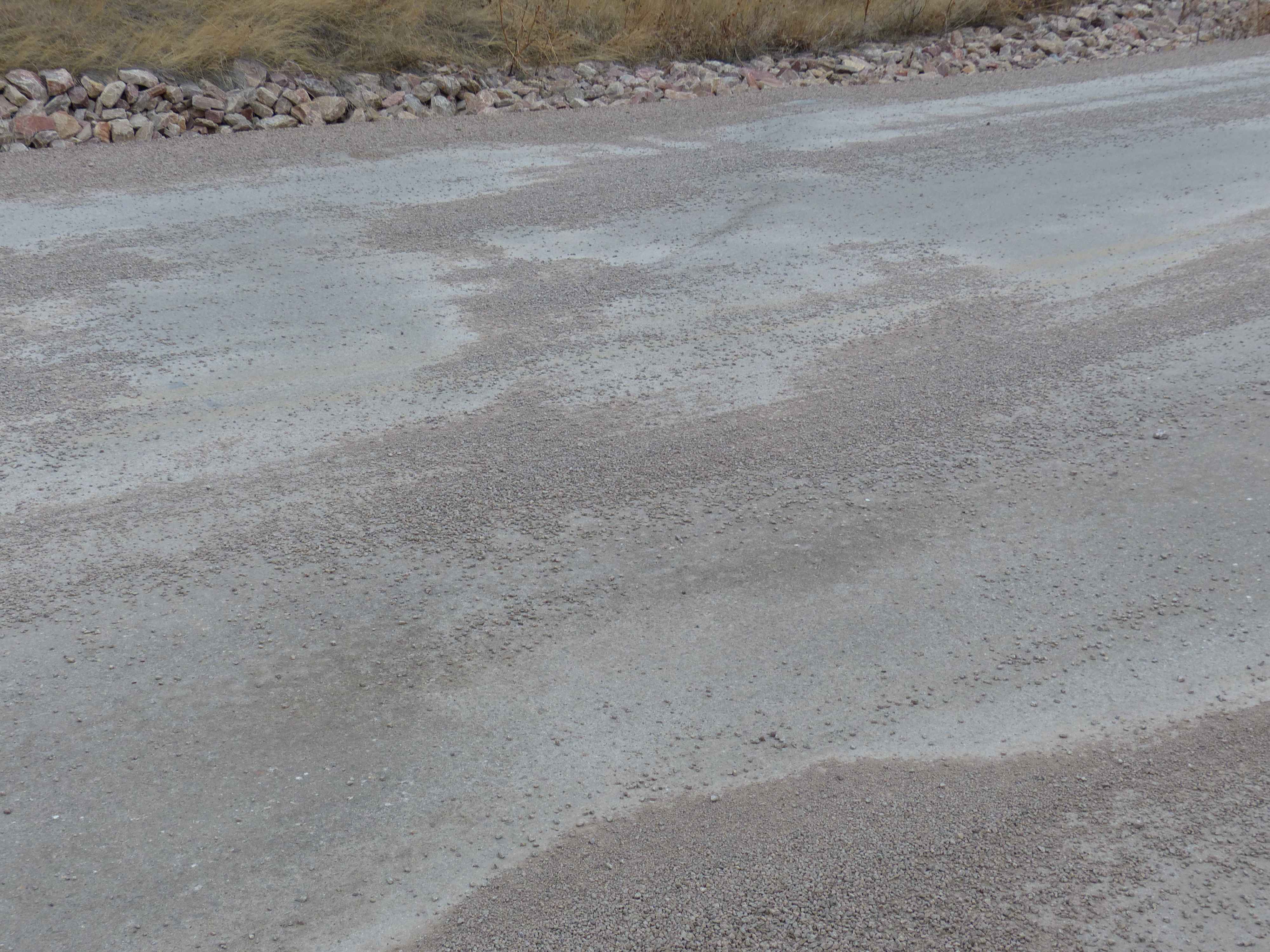 Asphalt surface conditions, frost heaves and low spots. Cliff Shelf Area asphalt heaves.