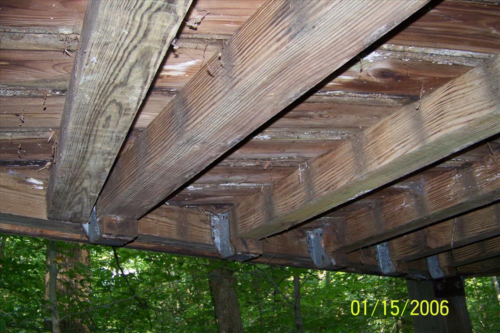 rotted deck boards view from under deck looking west northwest