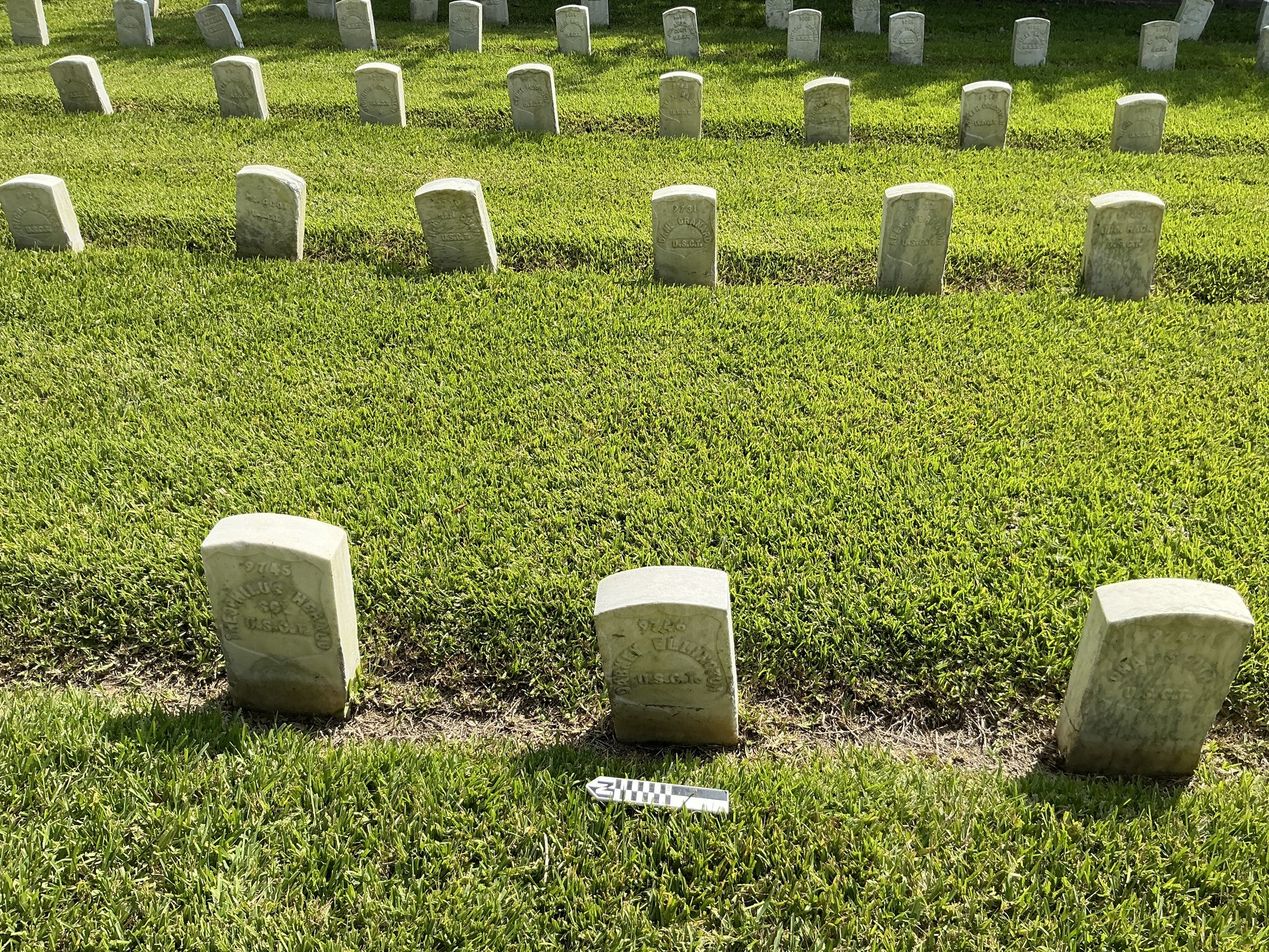 Headstone at Chalmette National Cemetery. Grave ID: 9746. Located at Section 119, Row 2, Site Number 7. Photo taken as part of the 2024 condition assessment and inventory.