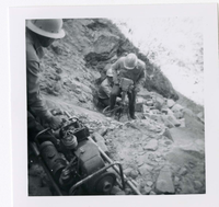 Workers repairing trail damage on the Hidden Canyon trail. ; ZION Museum and Archives Image 008.14.01-19of22 ; ZION 15933