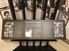 A zoomed in photo of the exhibit panel identifying the women's photos. A larger Lucy Burns cut out of her upper body sits behind prison bars. Behind her are photos of other women imprisoned. The sign explaining who is who is in front of the bars.