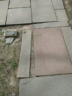 What looks like a stone walkway cobbled together, but if you look carefully, you can see worn out letters etched into the stones.