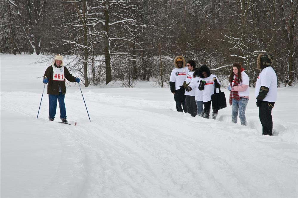 Images of cross-country ski events were taken in winter 2009 at the Ledges in Peninsula, Ohio. || Braving below-freezing temperatures and cold winter winds, Special Olympians from all over Ohio gathered at Cuyahoga Valley National Park to compete in winter sports. Special Olympics is an international organization dedicated to empowering individuals with intellectual disabilities to become productive, physically fit, and respected members of society through sports training and competition.