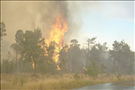 Full fire with black smoke in wooded areas during Long Mesa Fire at Mesa Verde National Park, July 29-Aug. 4, 2002