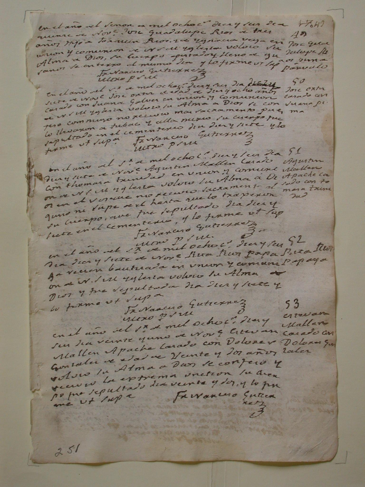Tumacácori Mission Record, page 251
