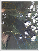Figure 2. Photo shows rainforest fence lines in yellow and park boundary in blue. Dots denote locations of natural barriers that are subject to trespass by feral animals.