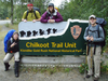 Four people pose with a sign reading "Chilkoot Trail Unit"