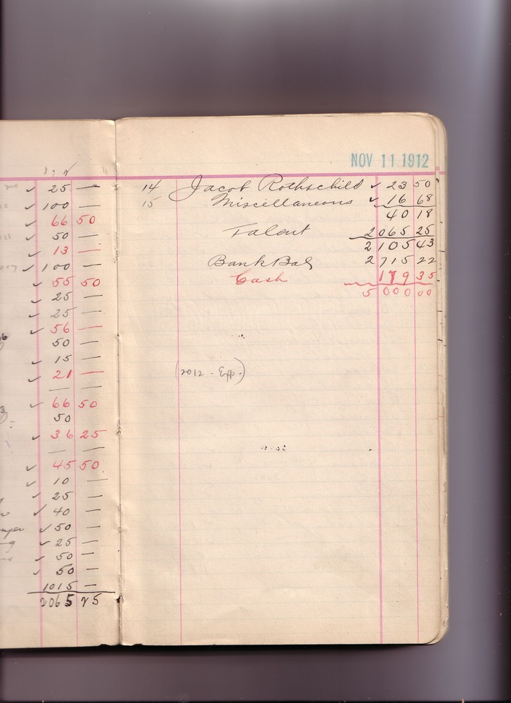 Some of the markings made in pencil in these cash books were made by ENHS Curator Leah Burt during the 1970s and/or early 1980s. For Leah Burt handwriting examples see pages for: December 19, 1921 (cash book 17) ; February 12, 1923 (cash book 17) ; October 27, 1924 (cash book 18) ; December 01, 1925 (cash book 19).