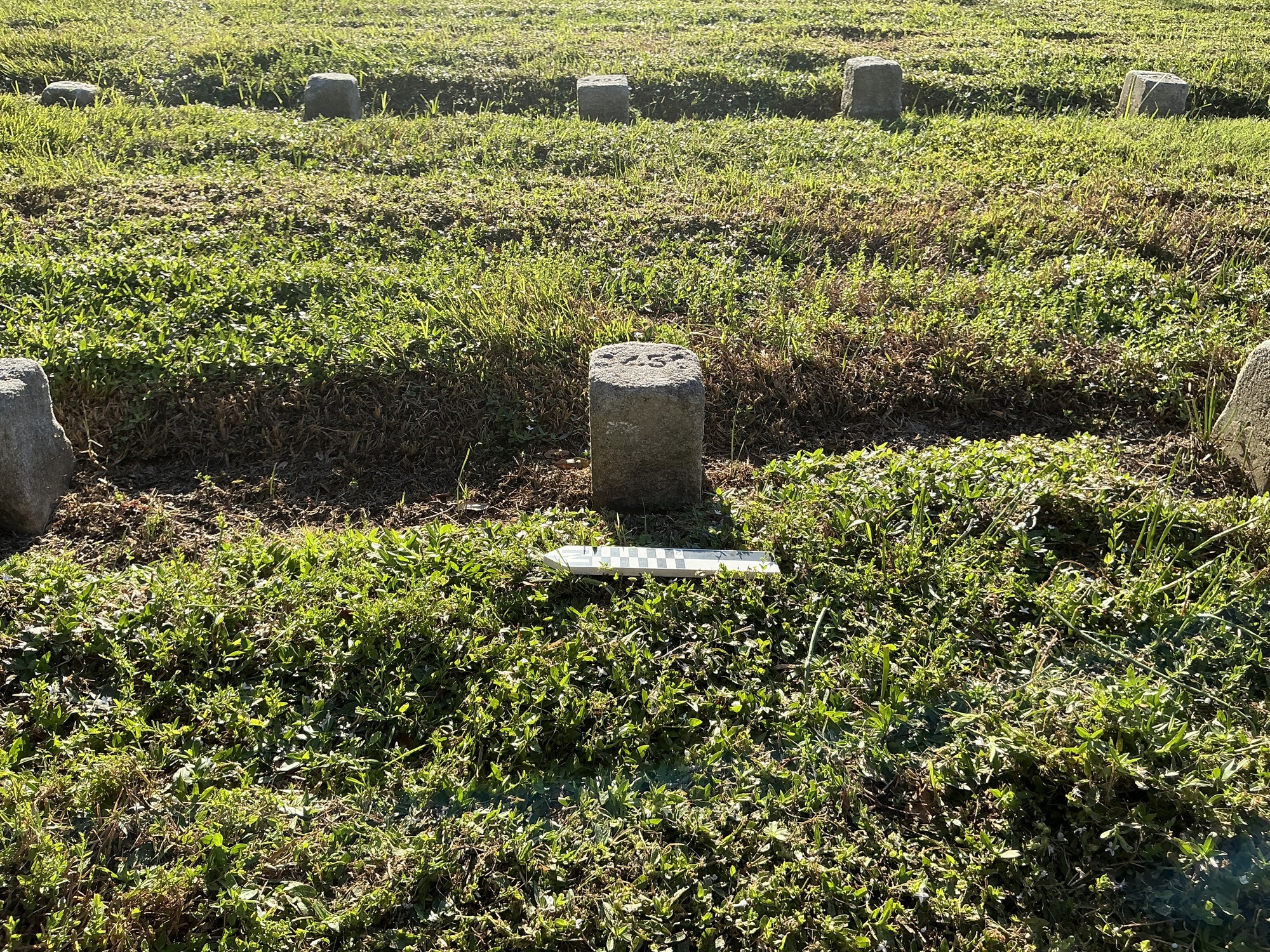 Flat Marker at Chalmette National Cemetery. Grave ID: 3450. Located at Section 45, Row 5, Site Number 3. Photo taken as part of the 2024 condition assessment and inventory.