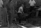 Men preparing foundation for cement during construction of headquarters addition. ; ZION Museum and Archives Image 004.01.04-146of352 ; ZION 15933