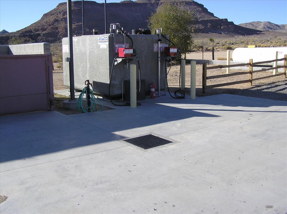Above Ground Fuel Tank at Hole In the Wall Fire Center. Open drain of washrack is near tank and would collect fuel in the event of a major spill.