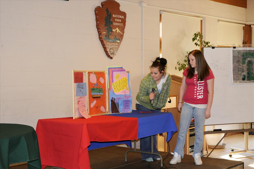 Throughout the Level 2 curriculum, middle school students have been learning about low-impact development (LID) and applying it to planning a residential housing development on specific pieces of land bordering the national park. Here they are finalizing their site development ideas and practicing their presentations for the Planning Commission meeting on the final day. || The Cuyahoga Valley Environmental Education Center's residential program provides fourth through eighth grade classes an overnight educational experience that integrates science, nature study, environmental issues, and the arts. Students learn natural history and the concepts of watershed, biodiversity, and habitat. In addition, environmental issues and the process of environmental decision-making are explored. The curriculum is designed to meet state standards and teach proficiency skills, especially in science and social studies.