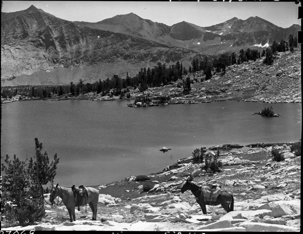 Lowell Sumner, 400904, South Fork Kings River, KCNP, Meadow studies, Misc. Lakes, Lake south side Cartridge Pass, permanent meadow photo plot study. Misc. Gaps and Passes