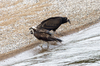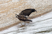 An Osprey and Black Vulture close together on the shores of the Potomac.