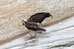 An Osprey and a Black Vulture stand side-by-side on a rocky beach at the edge of the Potomac River in Great Falls Park, Virginia.
