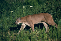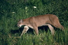 Mountain lion walking through meadow