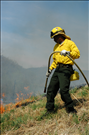 Firefighters working on prescribed fire activities in January 2007, near the Sandstone Visitor Center in New River Gorge National Park and Preserve.