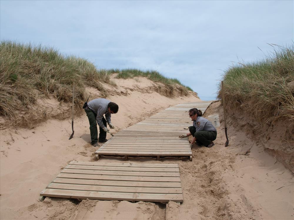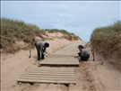 Workers prepare dunes and boardwalk at #9 Lake Michigan Overlook