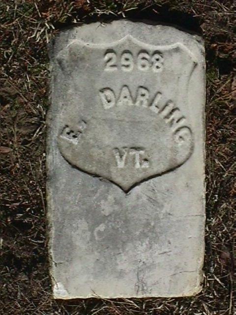 Headstone for E. Darling in Poplar Grove National Cemetery