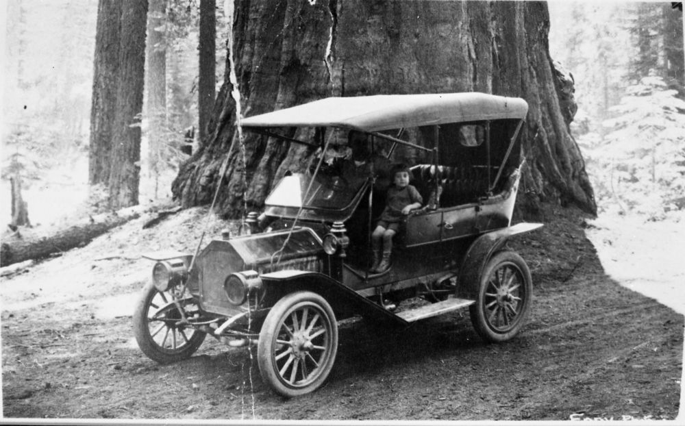 Lindley Eddy, 150000, Giant Forest, SNP, Vehicular Use, 1910 Grayline Buick. Driver John R. Lovely. Boy - John W. Lovely. Letter with print.