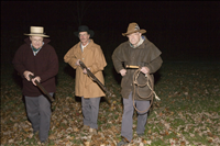 Volunteers practice their roles in a scene where abolitionists confront a local constable looking for a runaway slave. || Cuyahoga Valley National Park interprets Ohio's Underground Railroad heritage because the centerpiece or our park, the Ohio & Erie Canal, was a likely route traveled by runaway slaves. Experience the Underground Railroad, offered each November, places visitors in the role of an escaping slave. The program is part of the National Underground Railway Network to Freedom which recongnizes historic sites, facilities, and programs that have a verifiable association to the Underground Railroad. The photos show volunteers at the dress rehearsal.