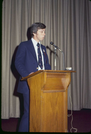 Robert Chandler speaking at the podium at the dedication of the Thomas Jefferson statue at the MWE. ; April 14, 1976